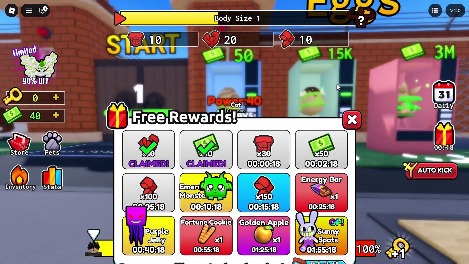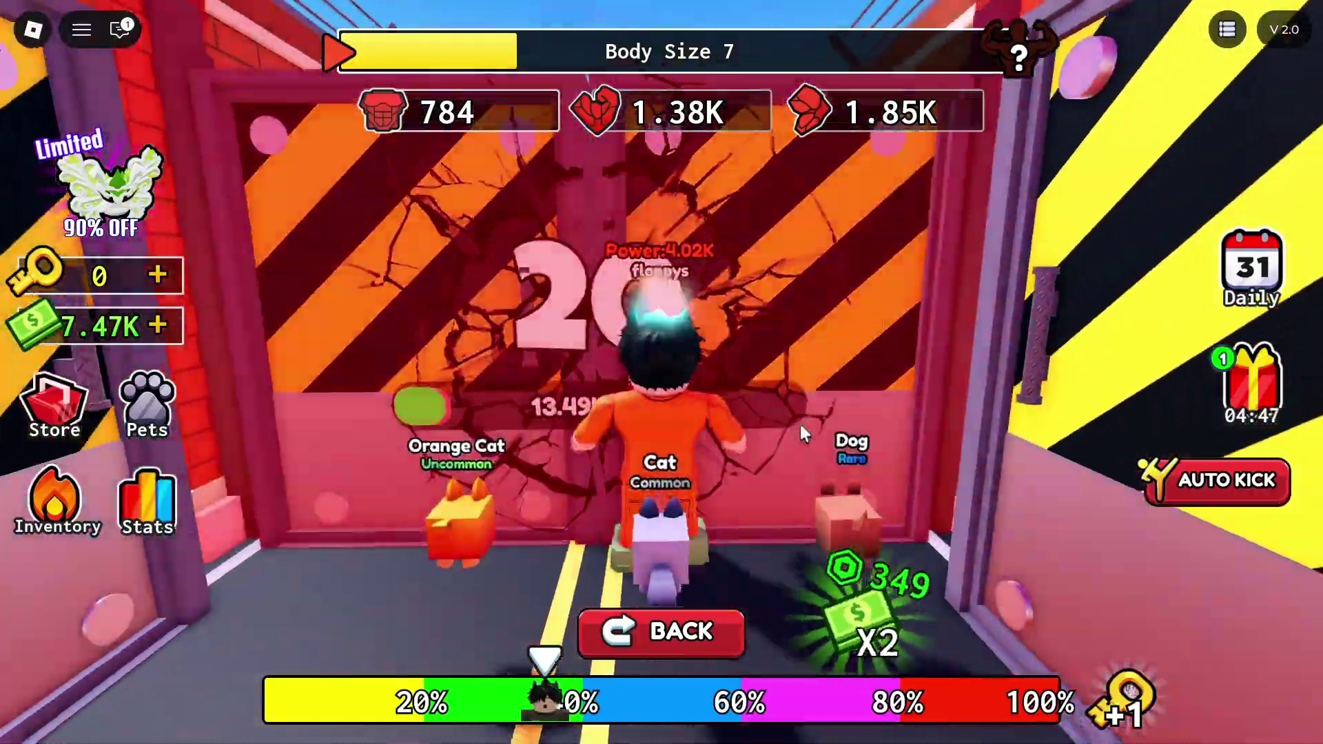 A crucial step in gaining strength is acquiring pets. Our first purchase is a 'Common Cat' pet, which provides a 1.10x multiplier to our stats. Complementing this, claiming daily rewards offers immediate boosts to strength and cash, setting the stage for more impactful training sessions.